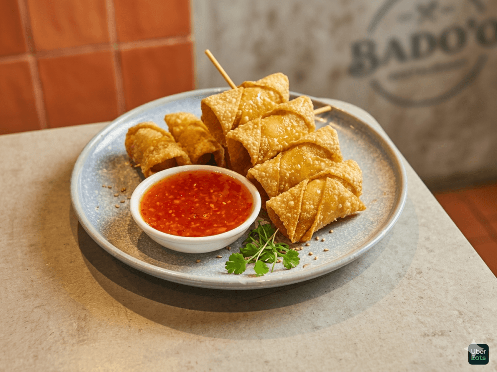 Quail eggs hand-wrapped in wonton pastry, flash-fried and served with sweet chili.